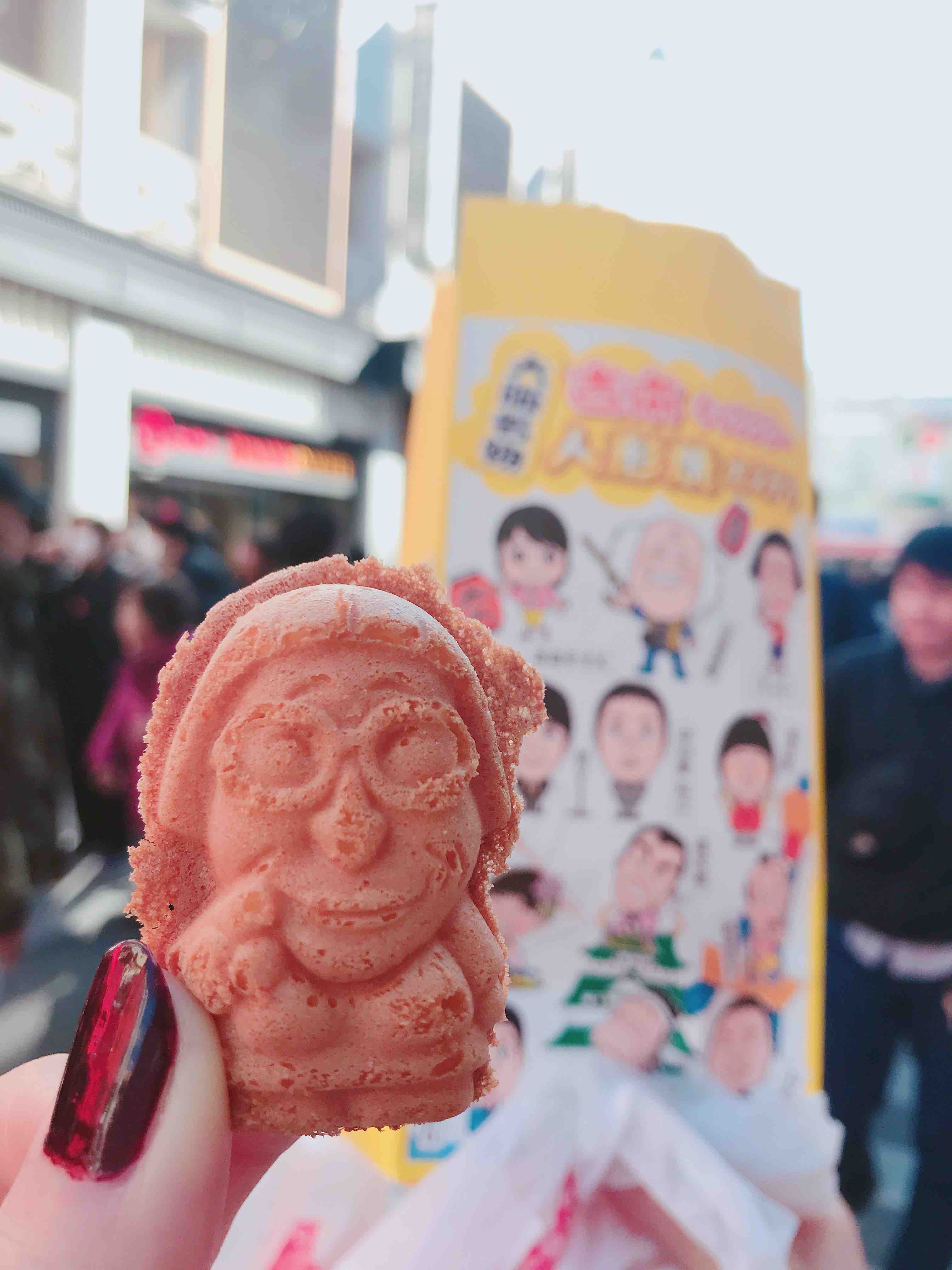 目の前で売っていた人形焼をつまみ食い。