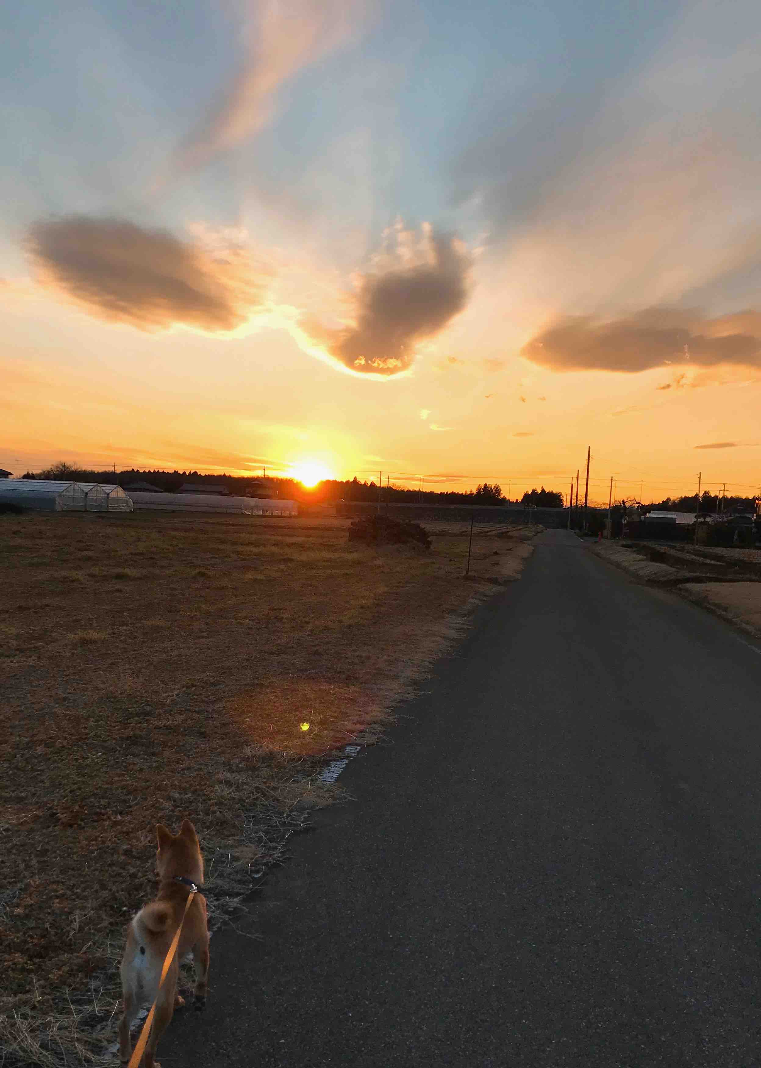 これから暑くなると陽が沈んだ時間にしか午後のお散歩は連れて行けないので、このキレイな夕日とはしばらくお別れです🐕