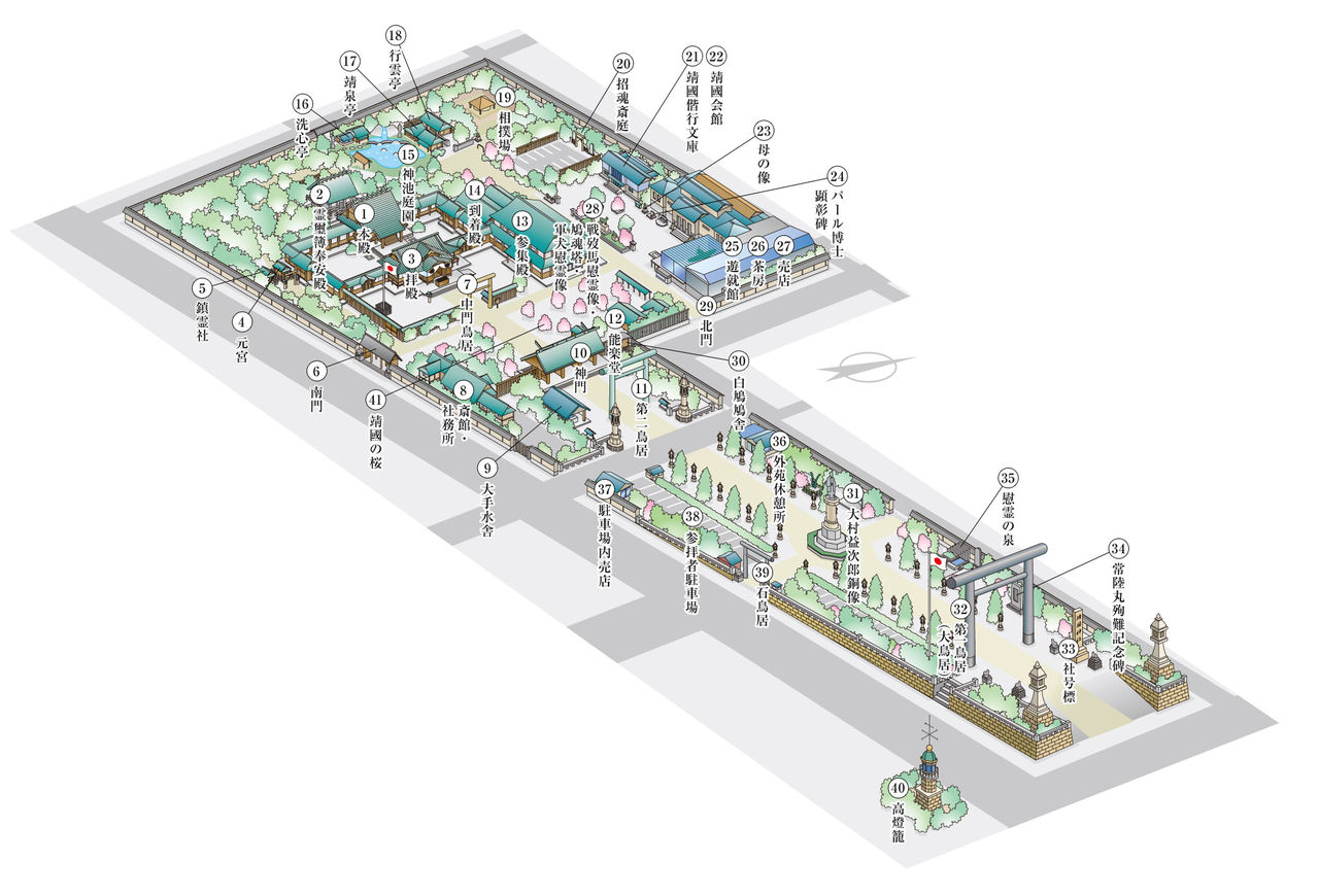 祭神は、戊辰戦争(1868〜1869)以降の日本が関係した国内外の事変・戦争において、戦役に就き戦没した日本の軍人・軍属を、慰霊・顕彰・崇敬などの目的で祀っています。