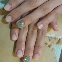 こんにちはうーたんですv( ̄∇ ̄)vお客様のネイルご紹介いたしますグリーン×ベージュ爪元に引いたラメと大振りのパールがポイントですご利用ありがとうございました★うーたん★ ...