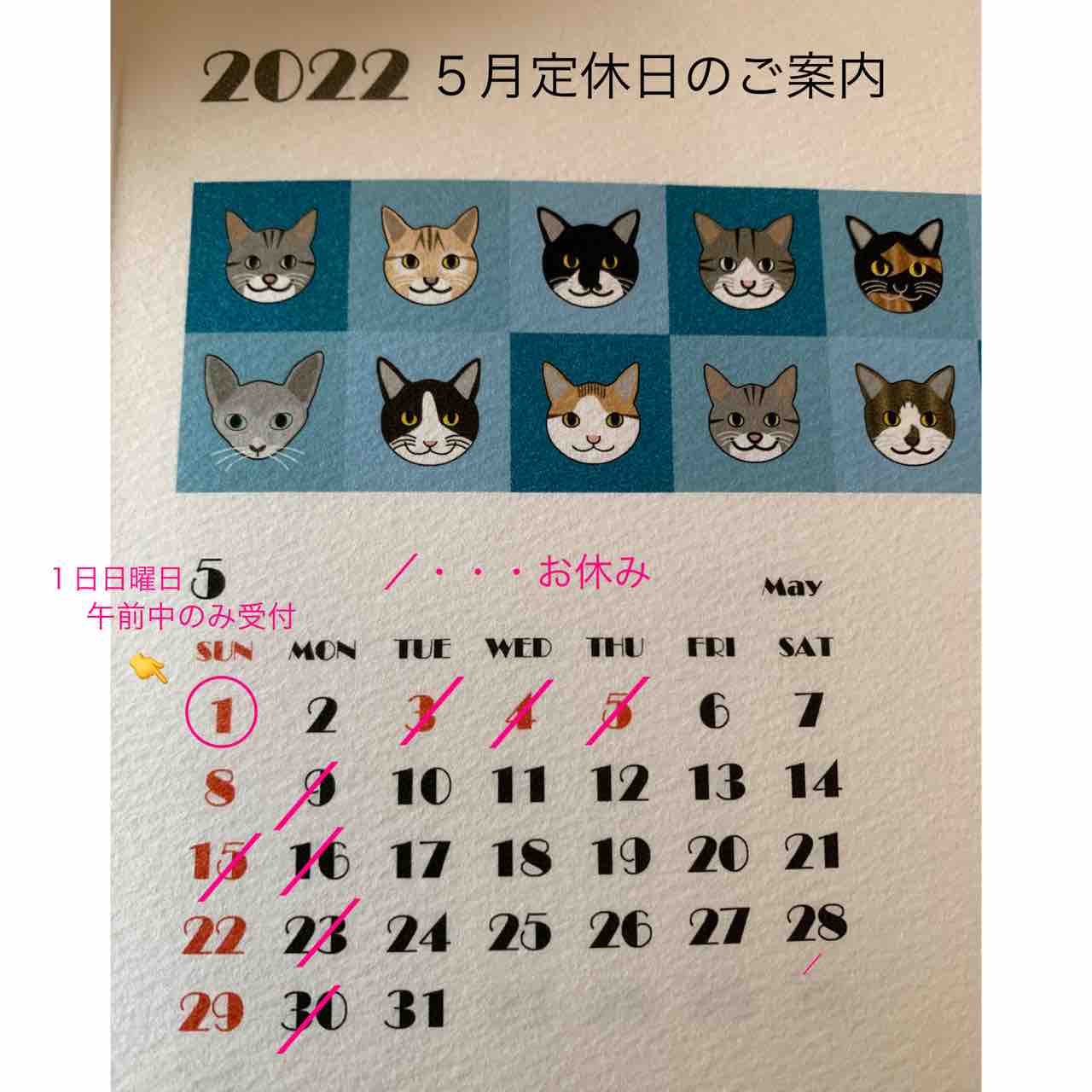 ☆5月の定休日のご案内です