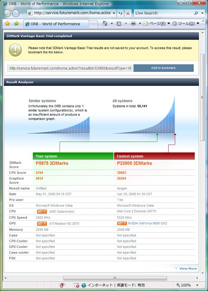 計測無かった様なので環境違いのサンプルとして見て頂ければ・・・