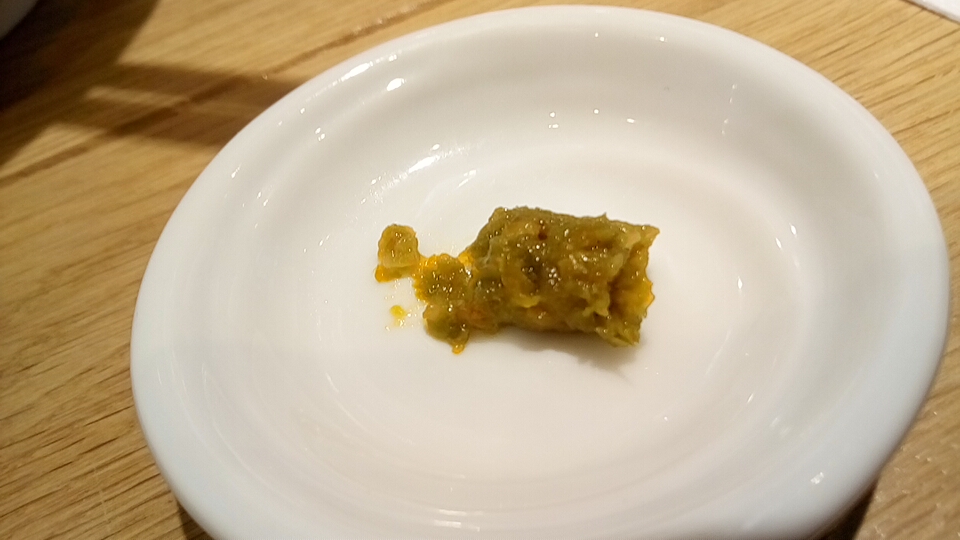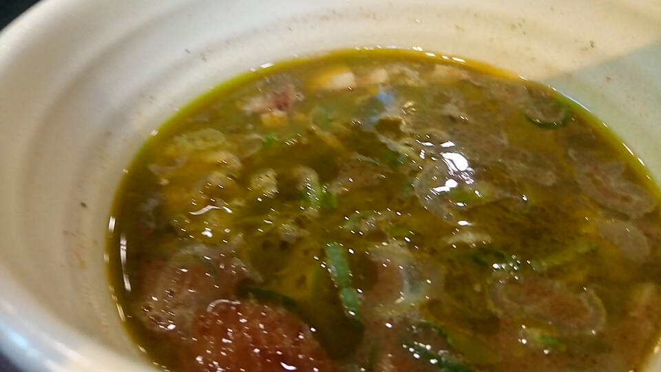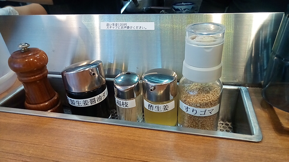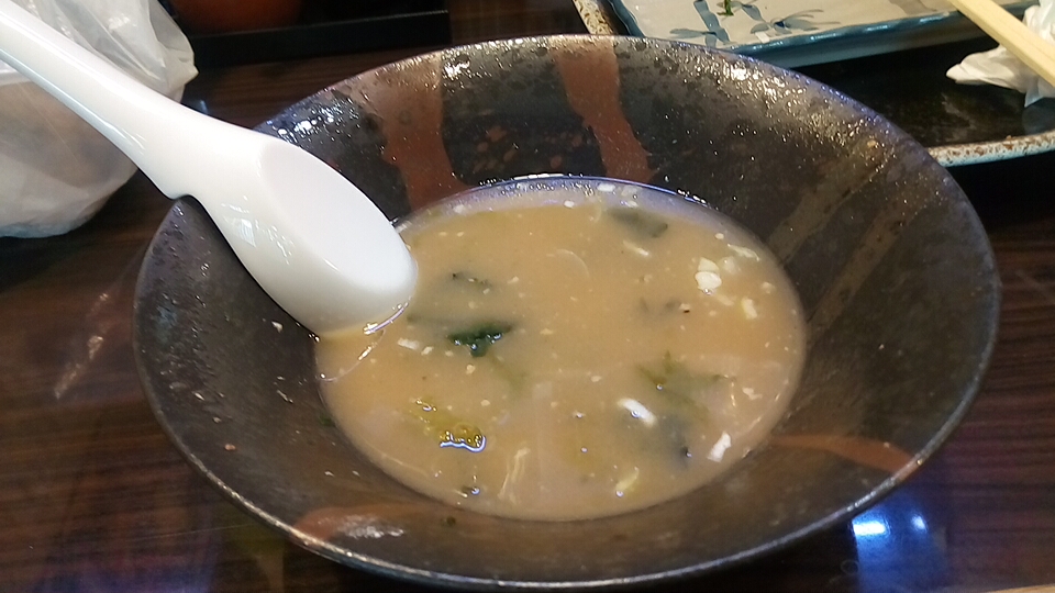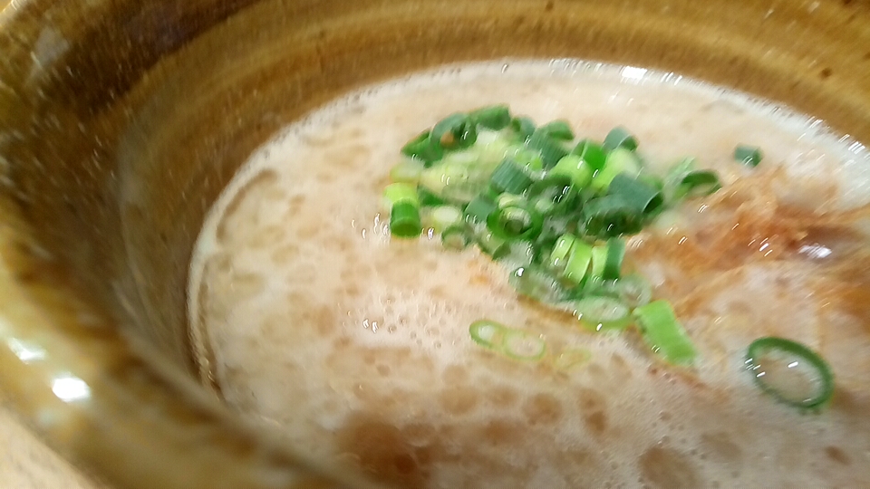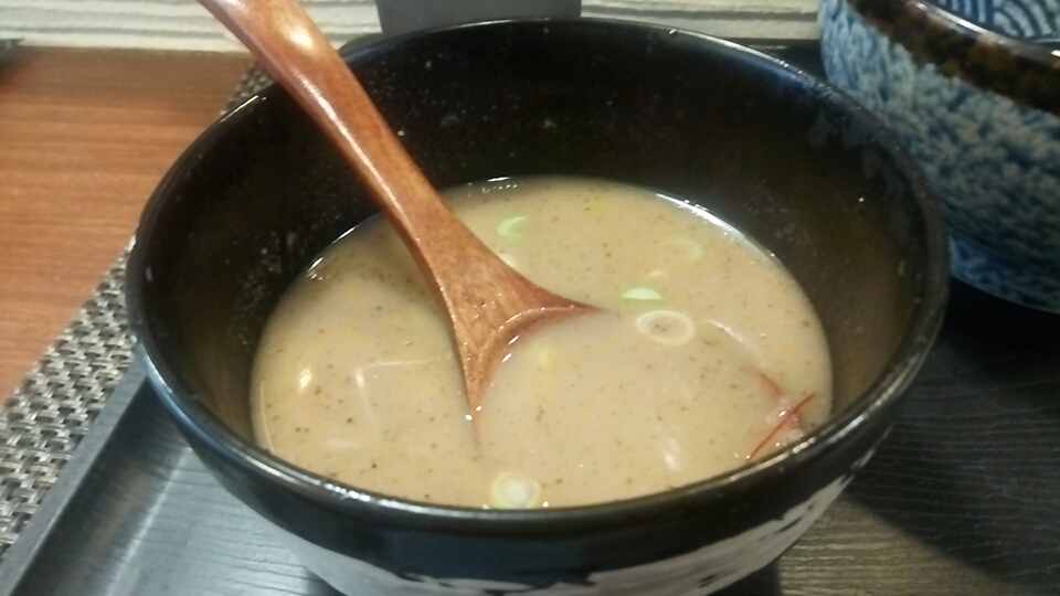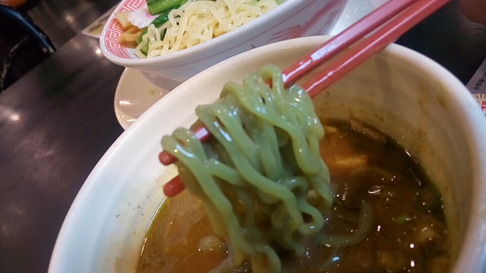 つけ汁は酸味と辛味と粘度の無い真鯛オイルのオイリー感が弱アリな塩味で、動物系の出汁が使用されていないので真鯛の風味(エグ味・生臭さ)が鼻腔をくすぐる少しオイリー感が強い柚子が仄かに香るつけ汁に仕上がっています。