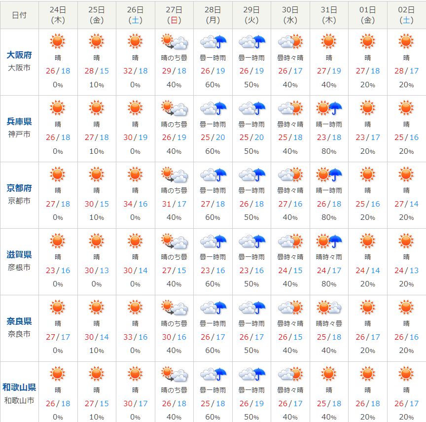 お天気.JPの10日間予報ですと6月2日までしか出ておりませんが