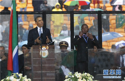 (CNN) 南アフリカのeNCAテレビは13日、マンデラ元大統領の追悼式典で