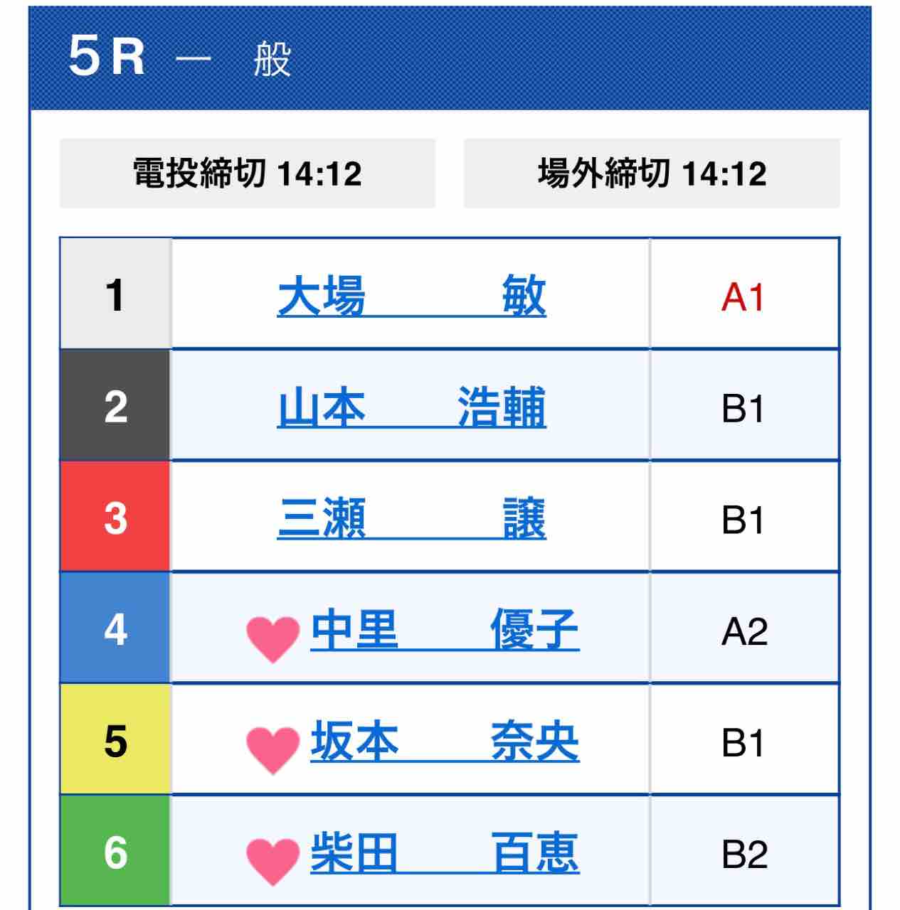 3コーススタート早くないので、2コースも残せるかも?!中里も4コースは差して無難なレース。