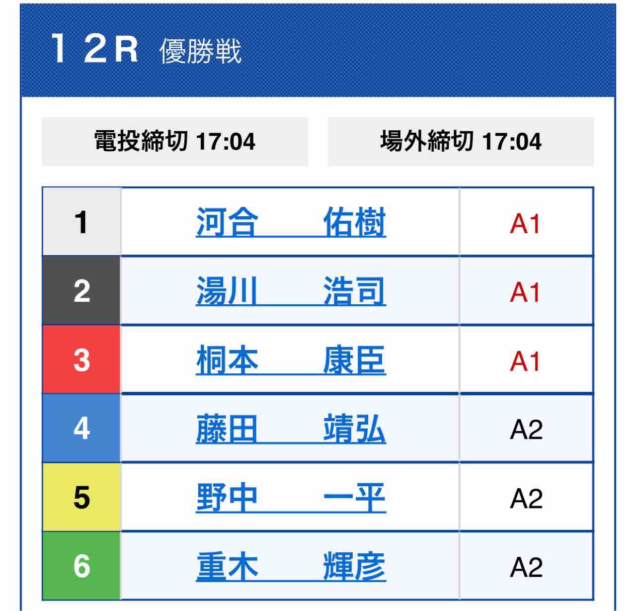 地元の河合が1号艇。