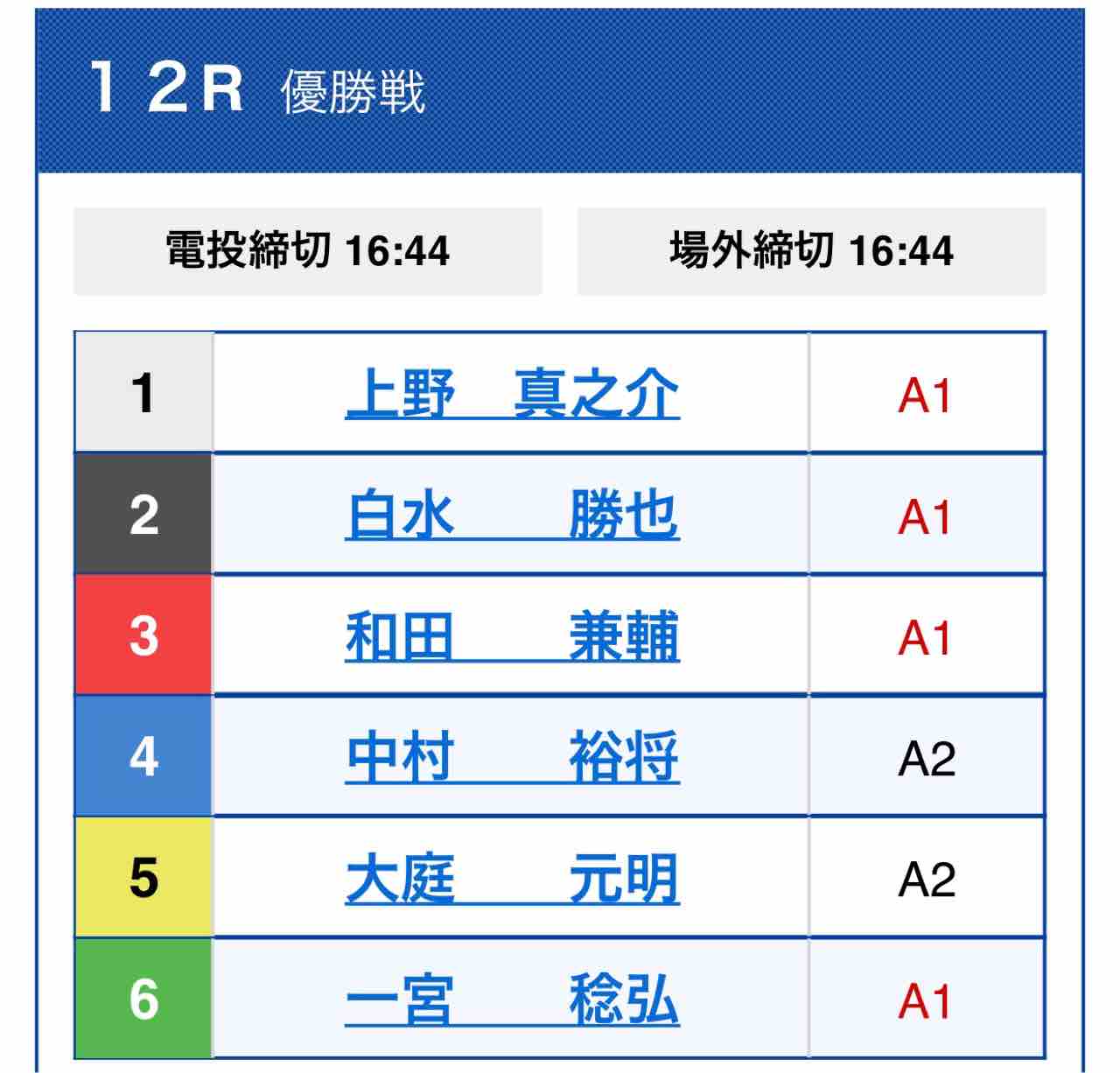 準優勝戦1号艇全部負けるとか。