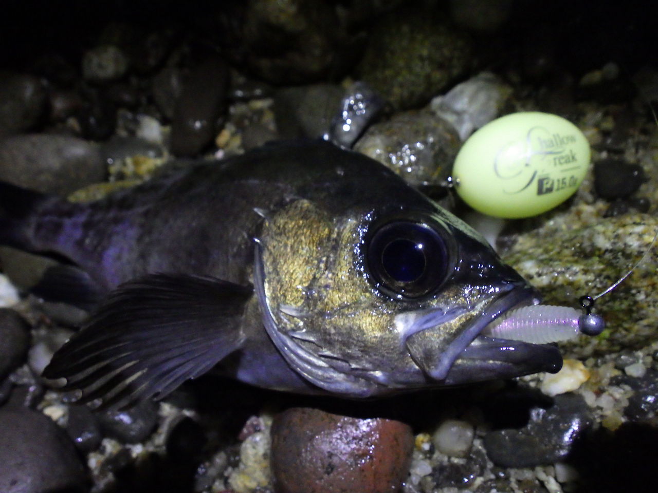 この日は大潮後の中潮で月が無いのも幸いして、暗くなってもゆっくりと探ればメバルからの反応は途切れず。