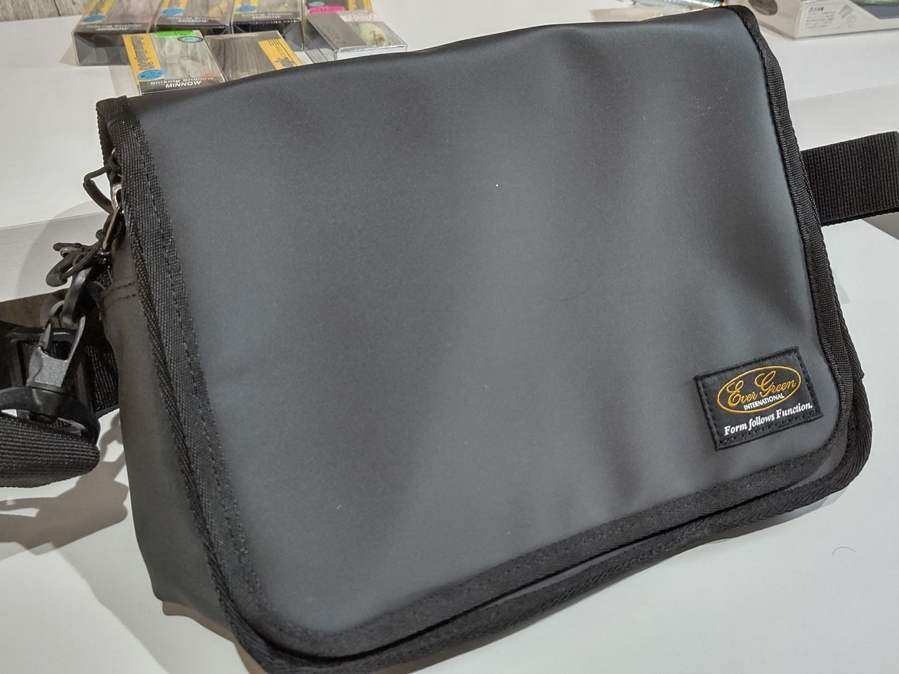 フラップの内側のクリア部分には、使用済みのワームやルアーを入れても良いのですが、入れたままスマホ操作が可能なので、私的にはタブレットや携帯等の貴重品を持ち歩くのに使用したいと思います。