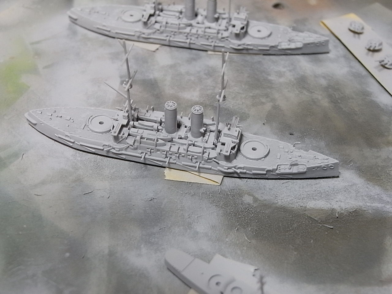 これまでマルチジェット方式の3DプリンタHD3500MAXで出力していた1/2000艦船モデルの戦艦三笠および軽巡洋艦夕張を手持ちの3DプリンタHunterで出力可能なよう手直ししたモデルの完成サンプルを製作中です。