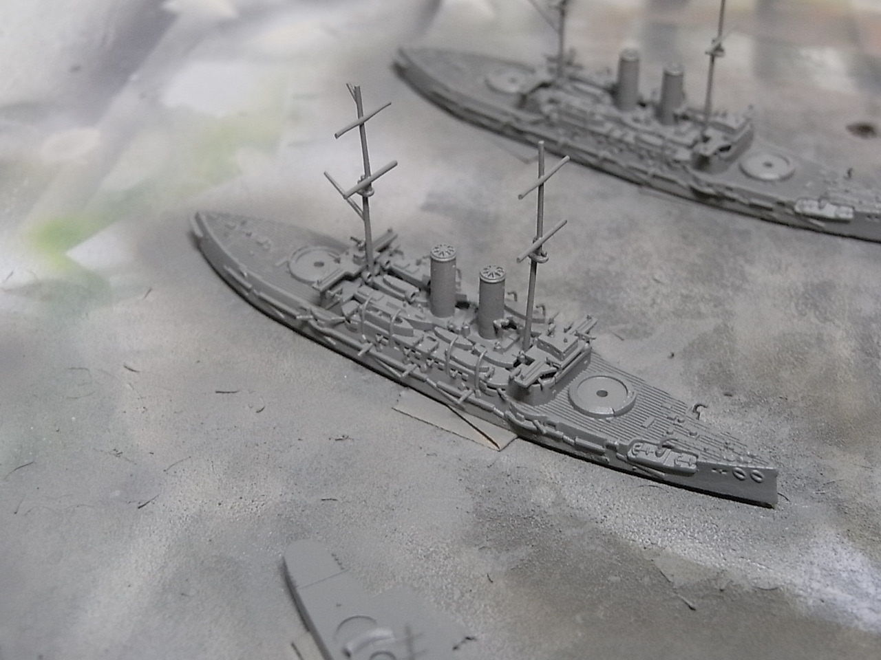 UVレジン版戦艦三笠、軽巡夕張、サンプル製作中