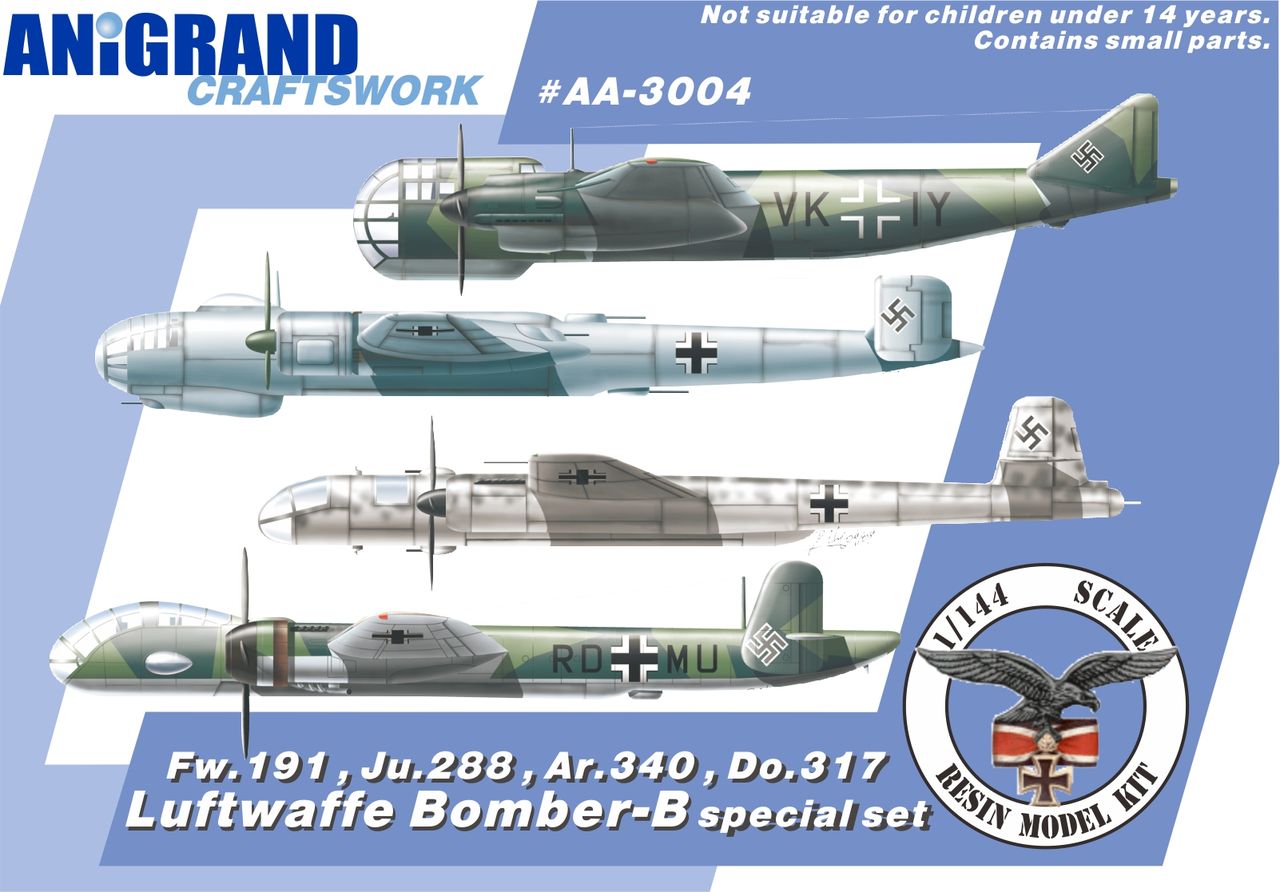 ハインケルHe.111の後継機の開発計画”爆撃機B”計画によって開発された爆撃機のセットです。フォッケウルフw.191、ユンカースJu.288、アラドAr.340、ドルニエDo.317の4機のセットとなります。