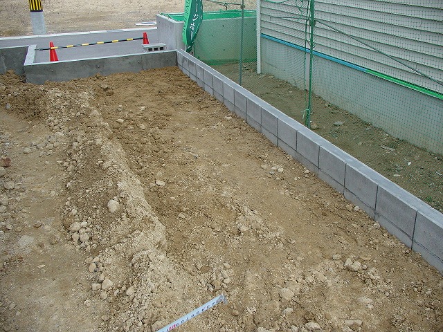 外構は少し予算オーバーしました。写真は子供達の砂場にする予定の場所です。