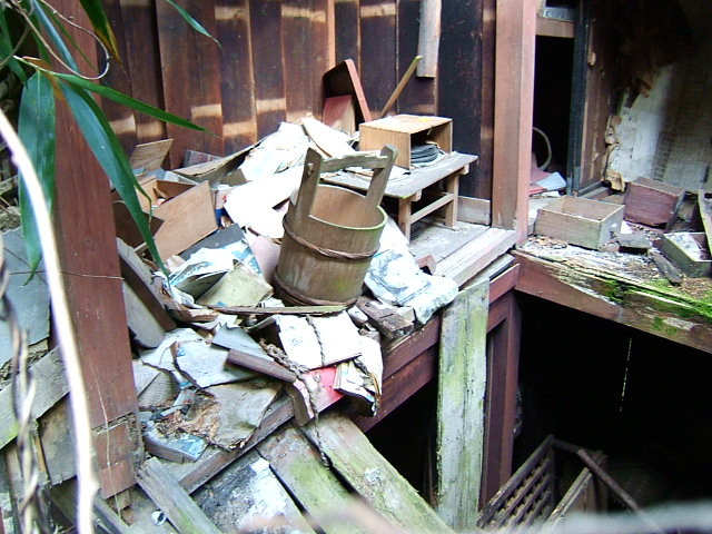二階建ての家、壁というか障子、窓が全部なくなってて