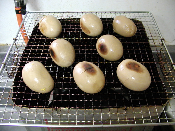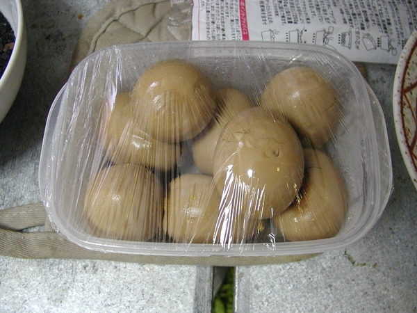 寝かせた後、土鍋で沸かしたお湯の中に投入、再沸騰したら火を止めて蓋をして余熱で加熱。