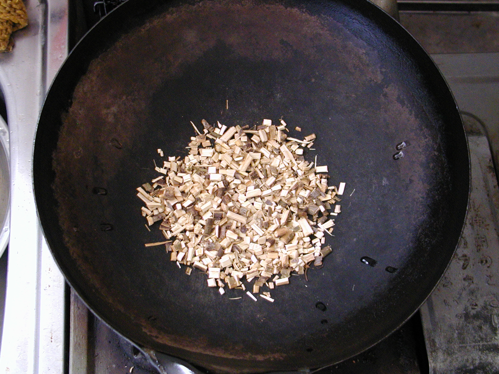 火はごく弱火。あまり火が強いとチップがすぐに焦げるし、