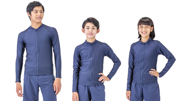 学校水着もジェンダーレス 長袖上着で露出控えめ