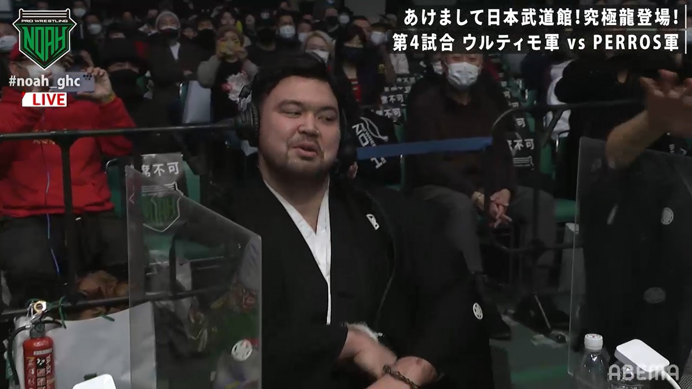 動画ではK-1の会場に入るまでの心境などを語り、いよいよリングサイドへ。会場からは大きな拍手と歓声が上がる。