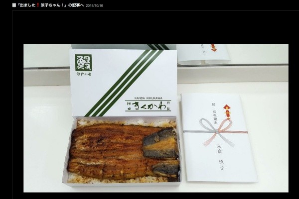 「今日はヒロインで私達をひっぱっている涼子ちゃんから 折り畳むほどのうなぎ弁当です」
