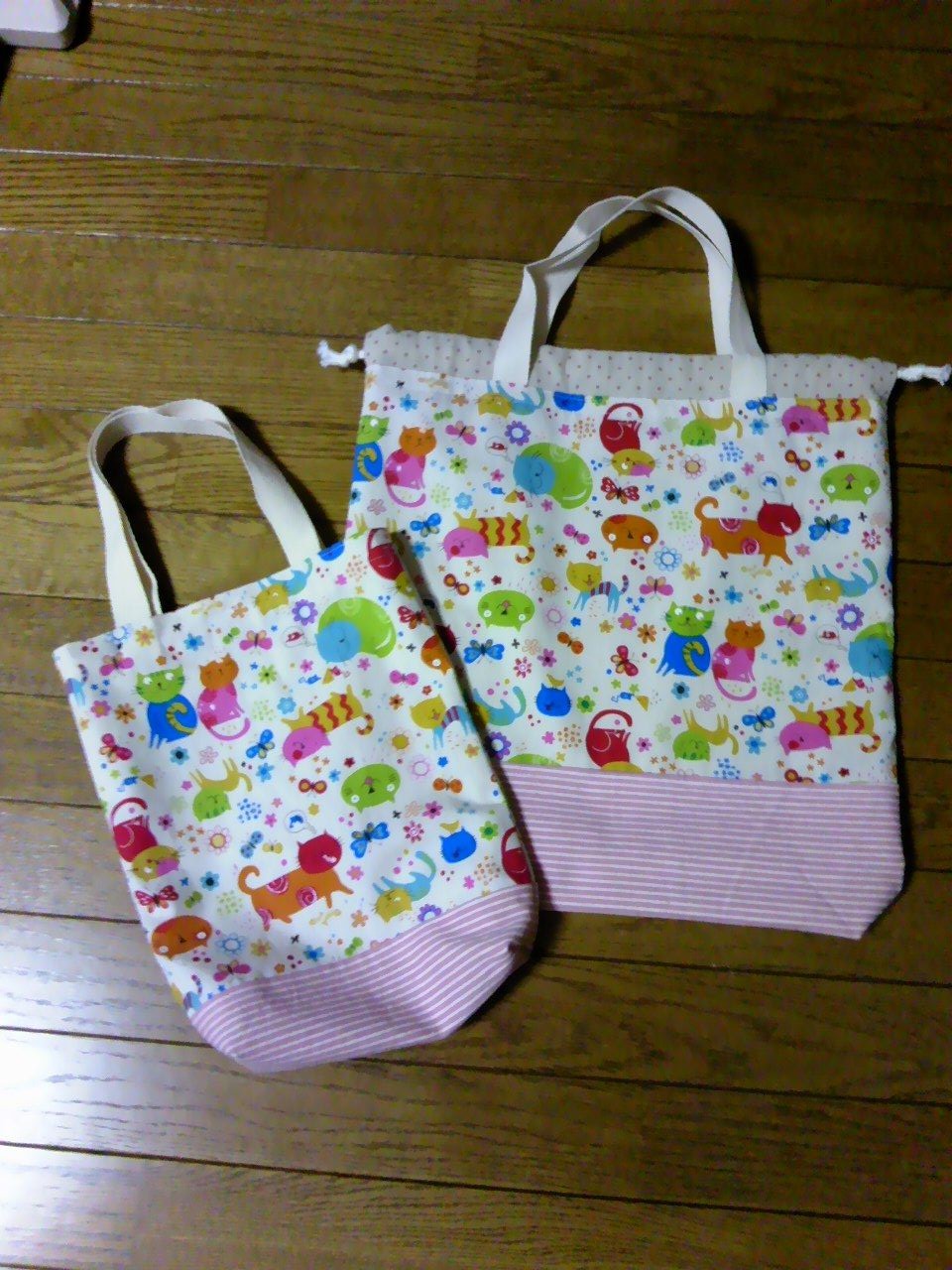 義母が持っていたムームーのようなワンピース(多分一度も着ていない)を解体して作りました。