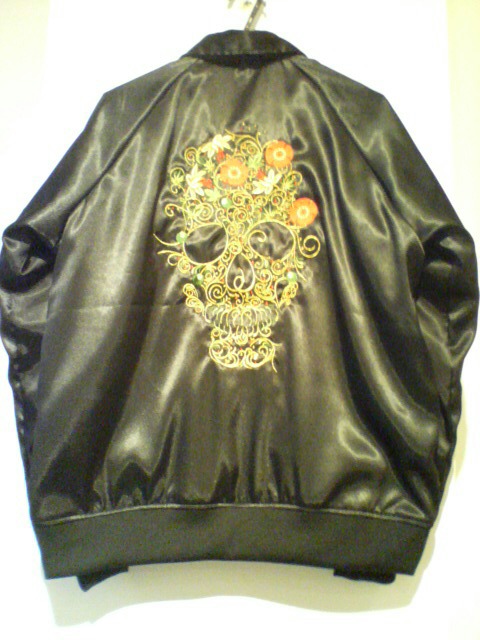 フロントの胸と背中に刺繍が施されており、背中は今期一押しのグラフィック「KHOKLOMA SKULL」がかなり綺麗に刺繍で描かれています◎
