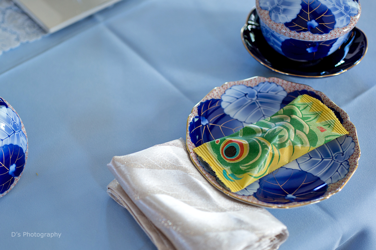 三世代が揃い、健康と成長に願いを込めて囲む、愉しい食卓が再現されています。