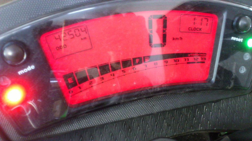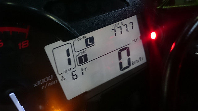 そしてこの日の帰宅途中に、慣らし2段階(1,600kmまで6,000rpm縛り。6速6,000rpm=109キロ)が終了。