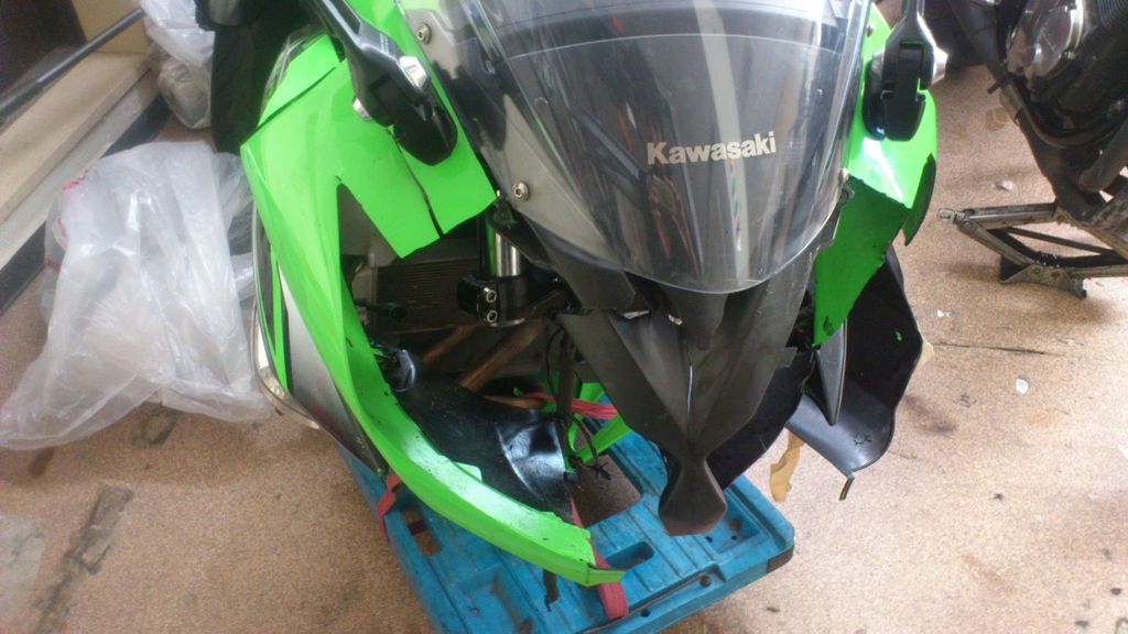 そしてカウルは割れ、タンクも一部が凹んでおり、おそらくフレームにも影響が・・・