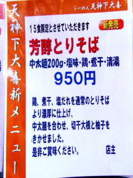 限定15食の「芳醇とりそば」が残っていたのでついつい入店(^^;。