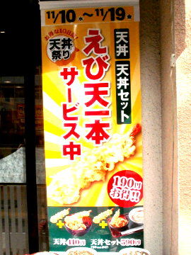 立ち食いチェーンの「小諸そば」では「天丼祭り」を開催中。