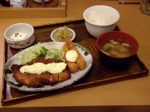 タルタルソースに惹かれ、チキン南蛮とエビフライの定食890円→690円の食券を購入。