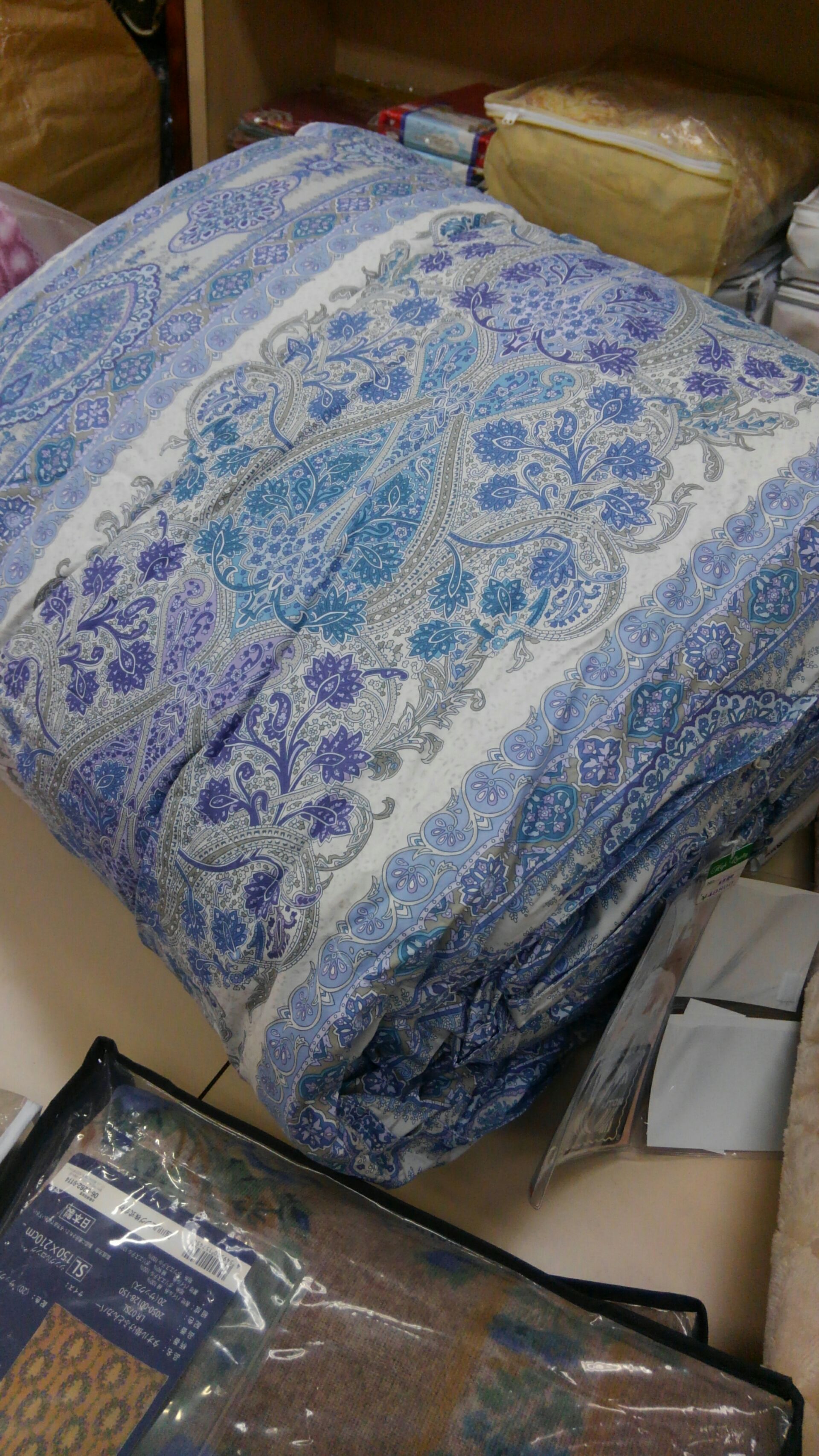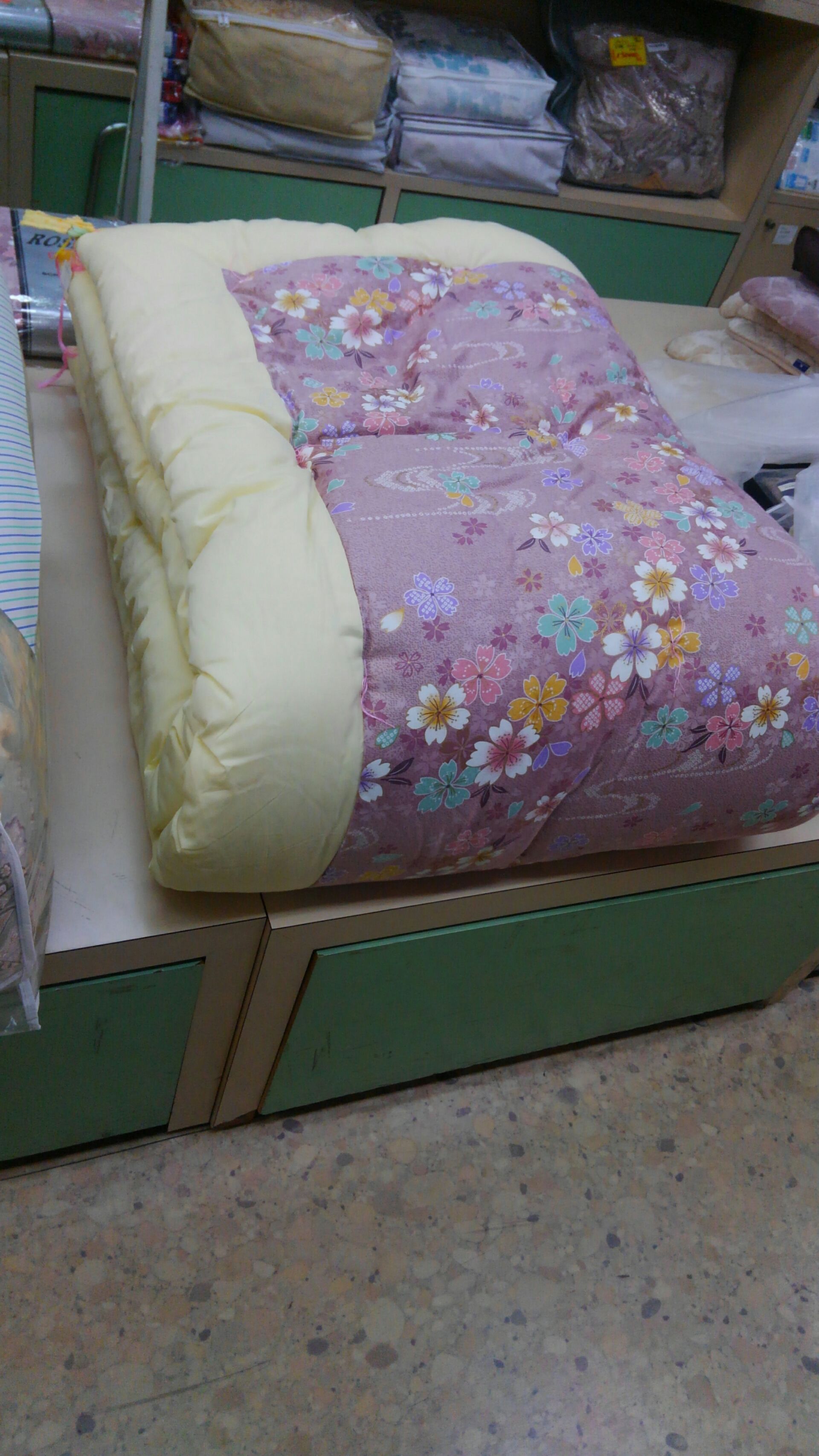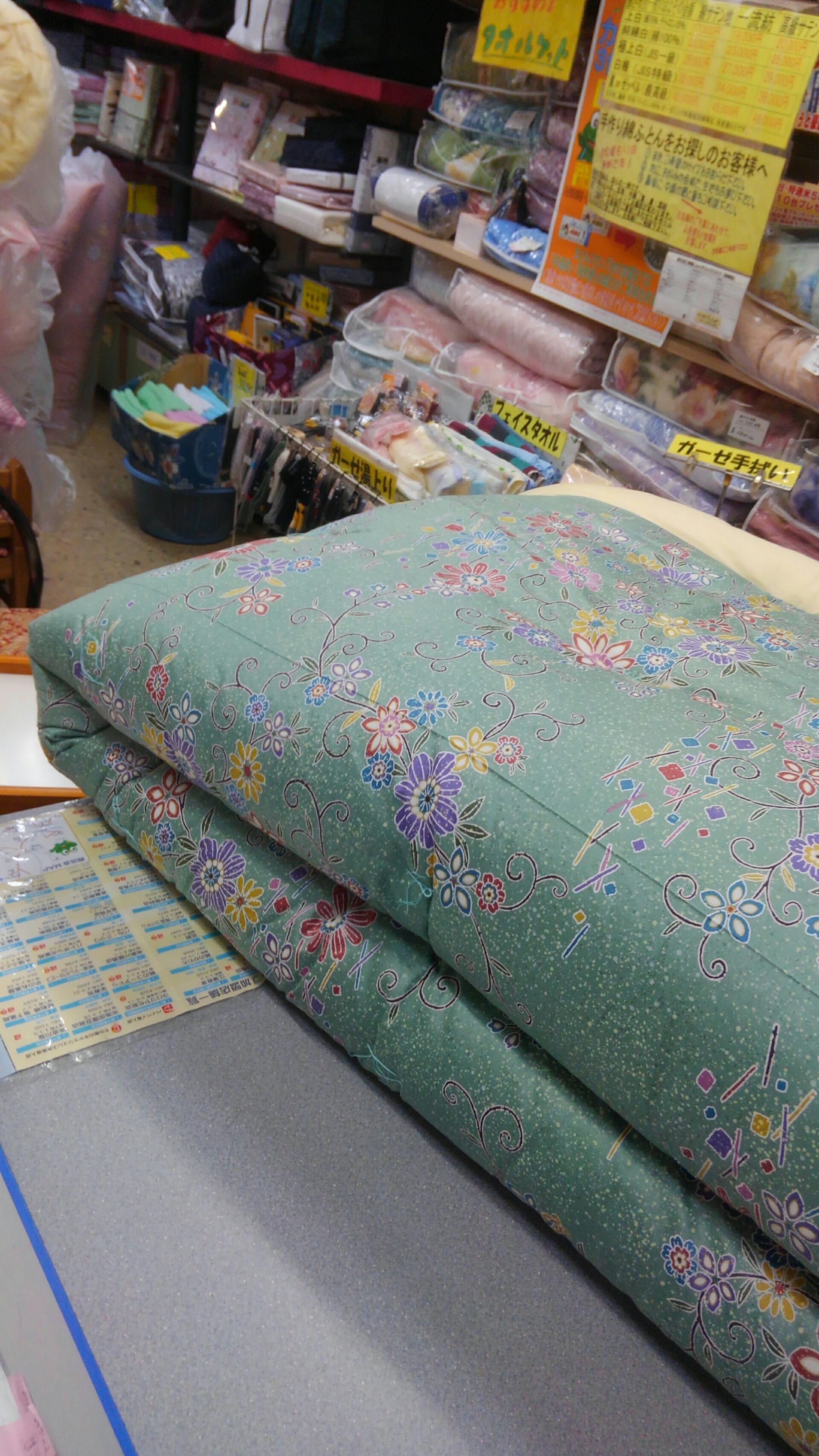 前に新しい【綿の敷きふとん】や、【マットレス】をお買い上げくださったK さまが、【冬用の綿の掛け布団】と、【掛けカバー】を買いに来てくださいました。(^人^)