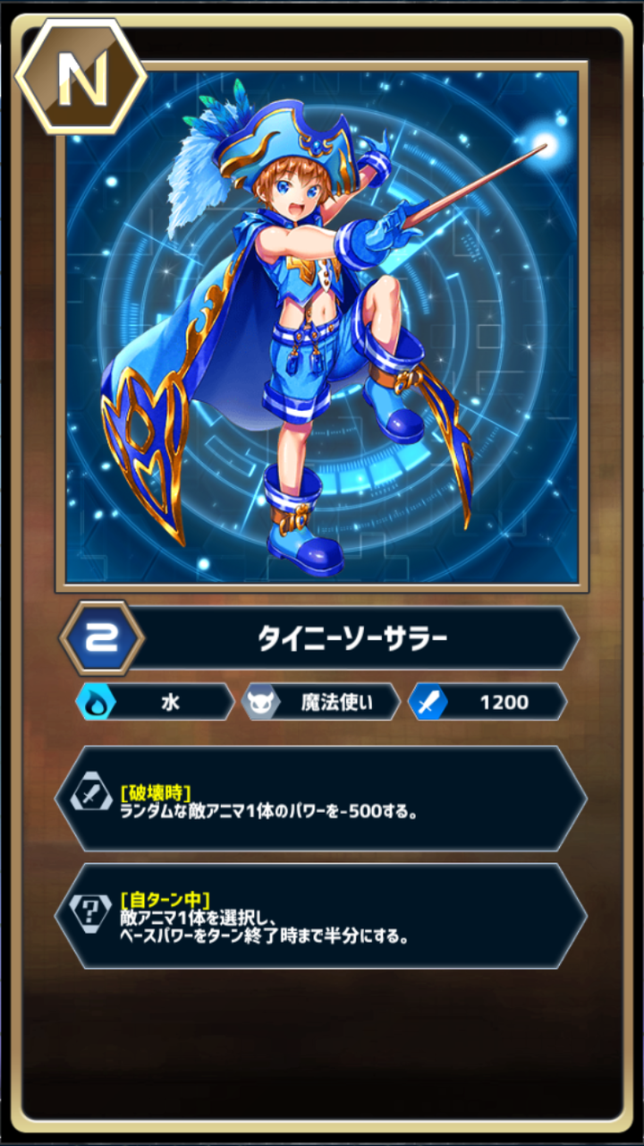 ・タイニーソーサラー(トリガー効果、敵アニマを1体選択し、自ターン中ベースパワーを半分にする)