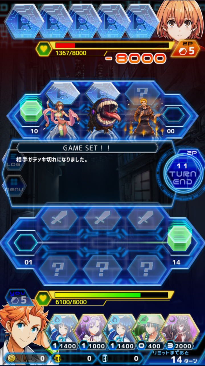 5ターン目まで天使の盾やらなんやらで粘られ続けてHP満タン状態で相手を倒して、黄金の魔女で錬成したら水銀武装デスサイズF3(煉獄王イフリート参照)を引いたので煉獄王イフリートを出してトドメです。