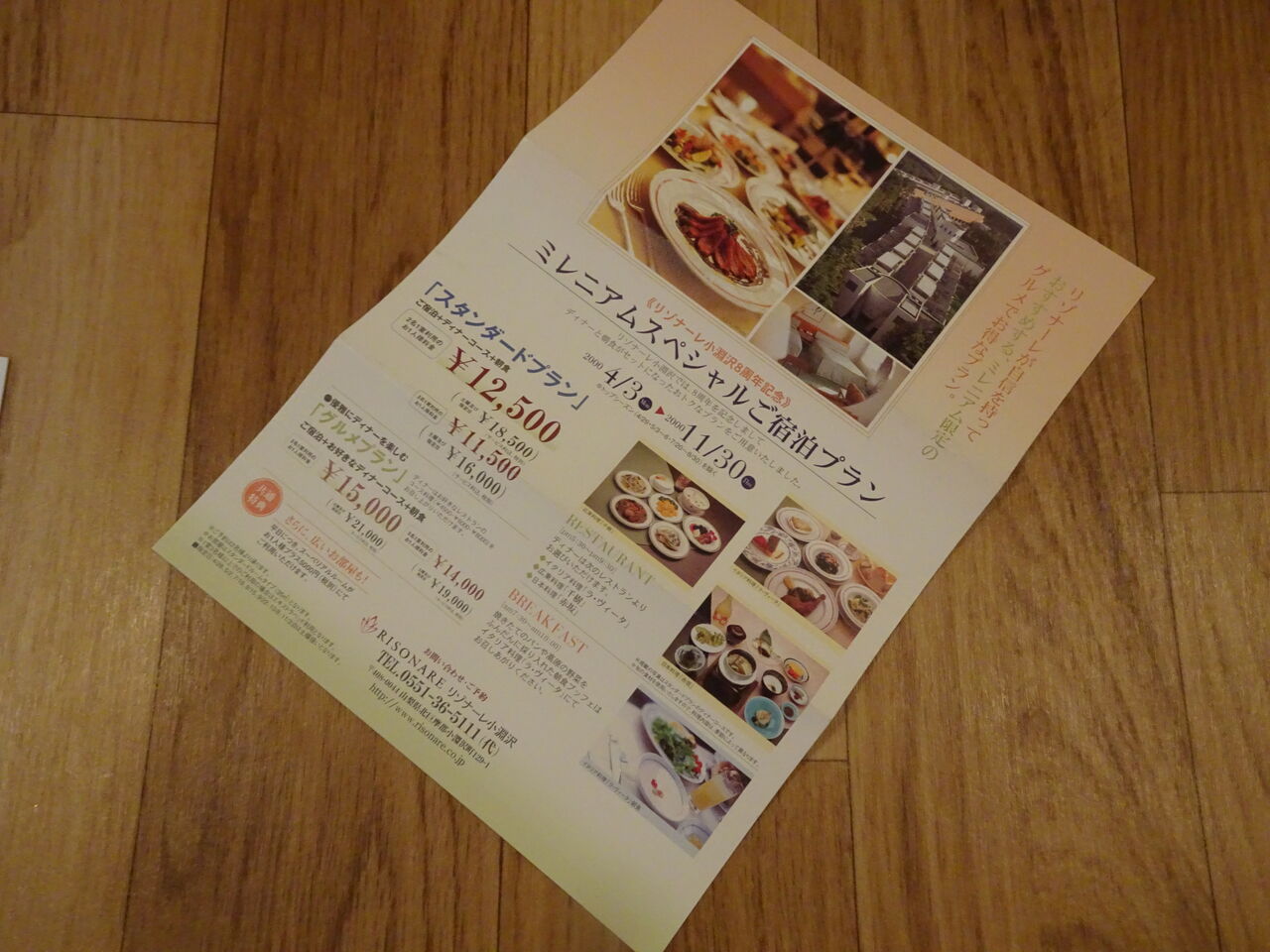 右は、2000年頃のチラシ。スタンダードプラン、一泊二食付きで12,500円(土曜日及び指定日は18,500円)。(そんなに高額なところには宿泊しない)私たちが泊まったんだから、そんなものでしょうね。私の記憶では何となく、15,000円くらいのイメージでした。