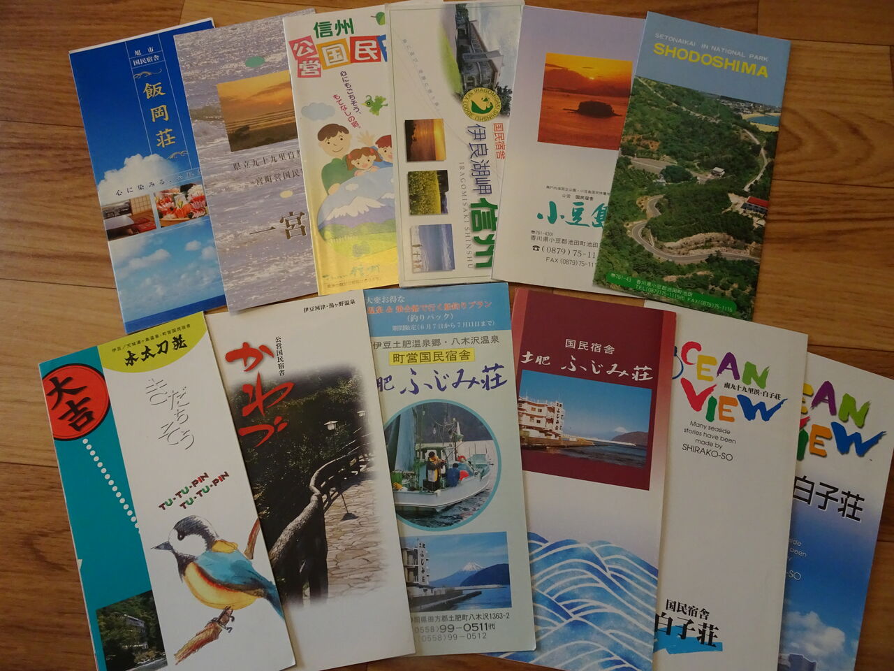 そのときはカミさんと初めて国民宿舎を利用しようと思って購入。その事務局には各宿舎のパンフレットが置いてあって、検討していたいくつかの宿舎や、学生時代の旅行で宿泊した宿舎の物を持ち帰ってきました。