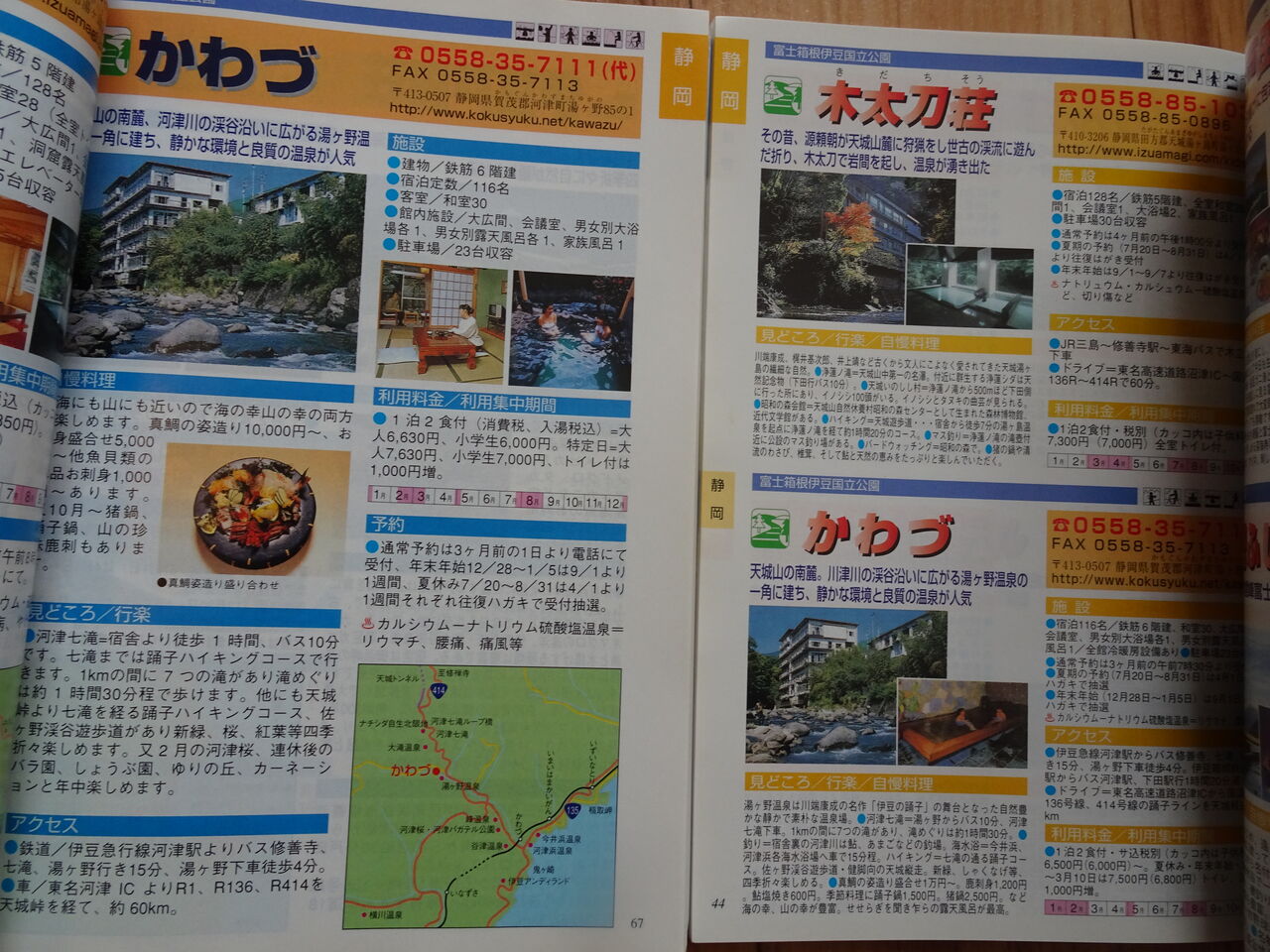 ...というか、2003年度版だと「四万ゆずりは荘」は、7,400円からとなっています。どうして値下がりした?(※)。学生時代の卒業旅行を計画した時に買った1991年のガイドブック(山と渓谷社版)では、5,250円となっています(その当時は5,000円台が一般的)。