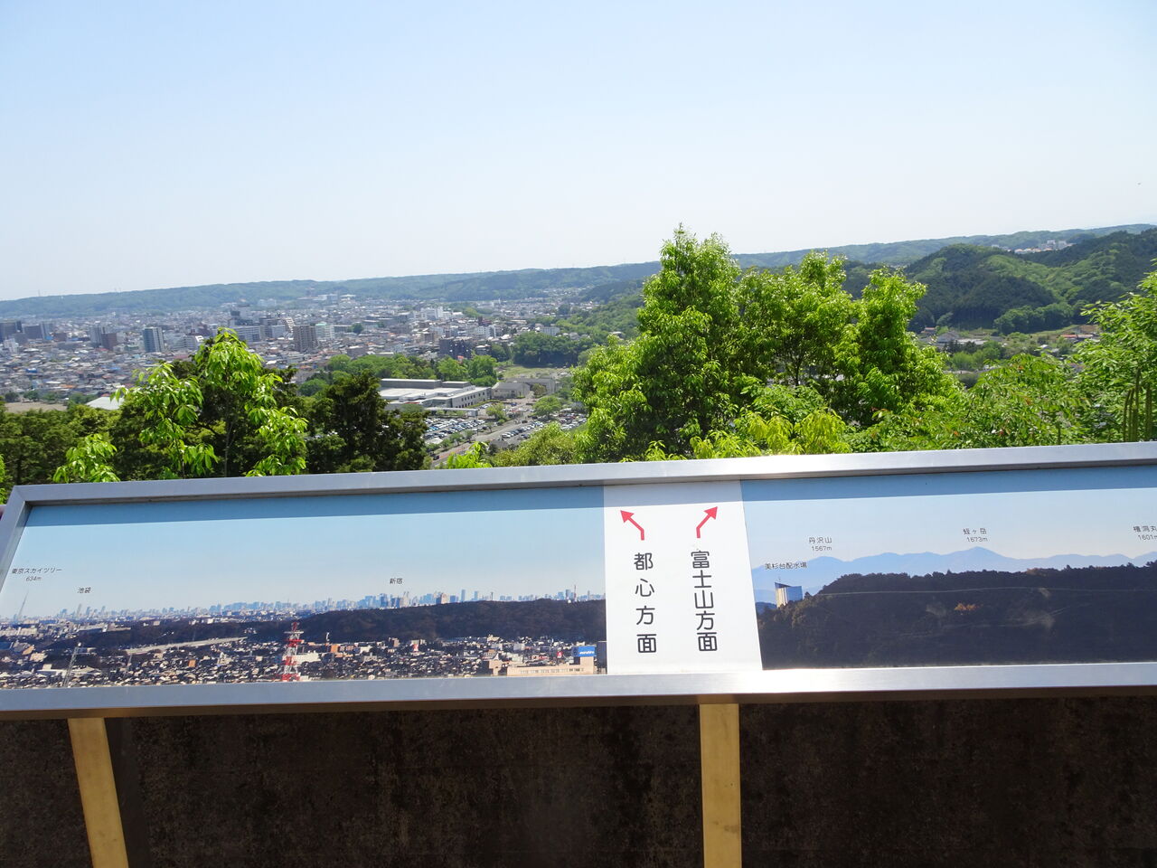 空気が澄んだ状態なら新宿ビル街やスカイツリーも見えるようですが、今回は昼間でもあり、そこまでは見えませんでした。富士山は、うっすらと見えました(左画像、よ〜く見ると富士山が見えます)。