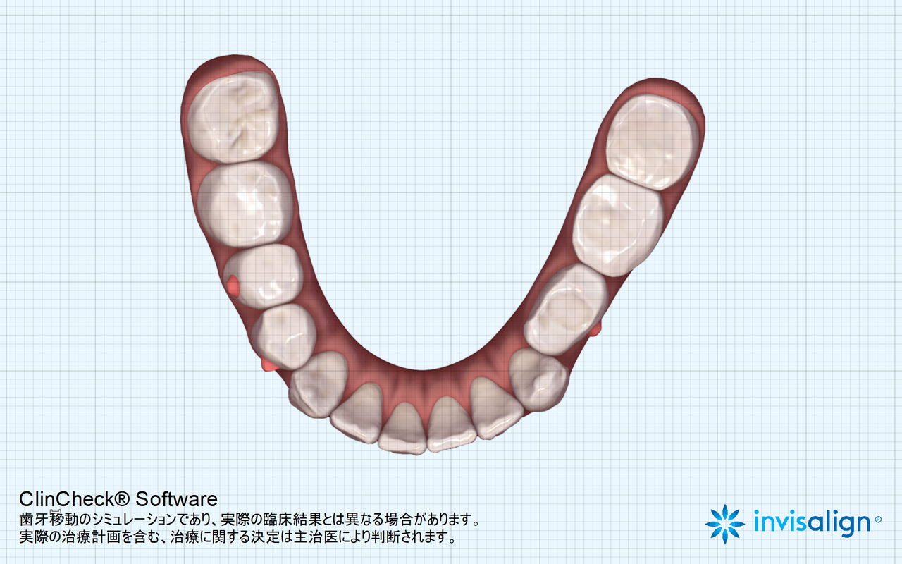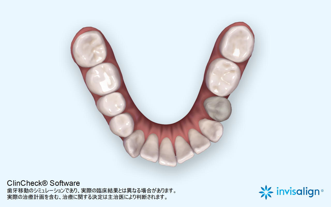 下の歯。こちらも歯並びの中に納まっている。