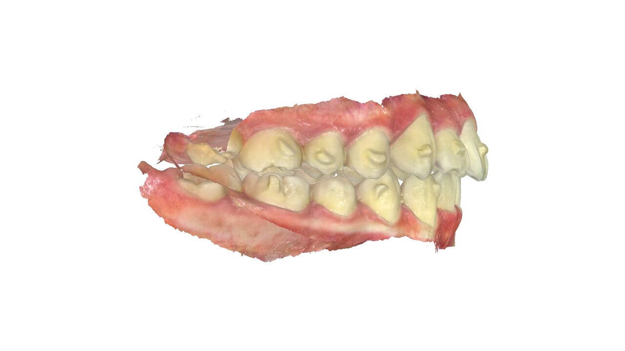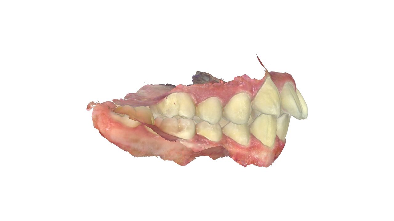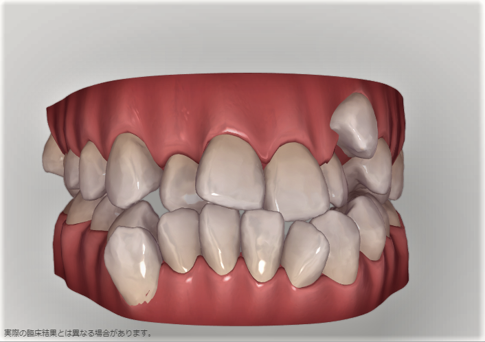 横から見ると少し前歯が出っ歯気味になっている。