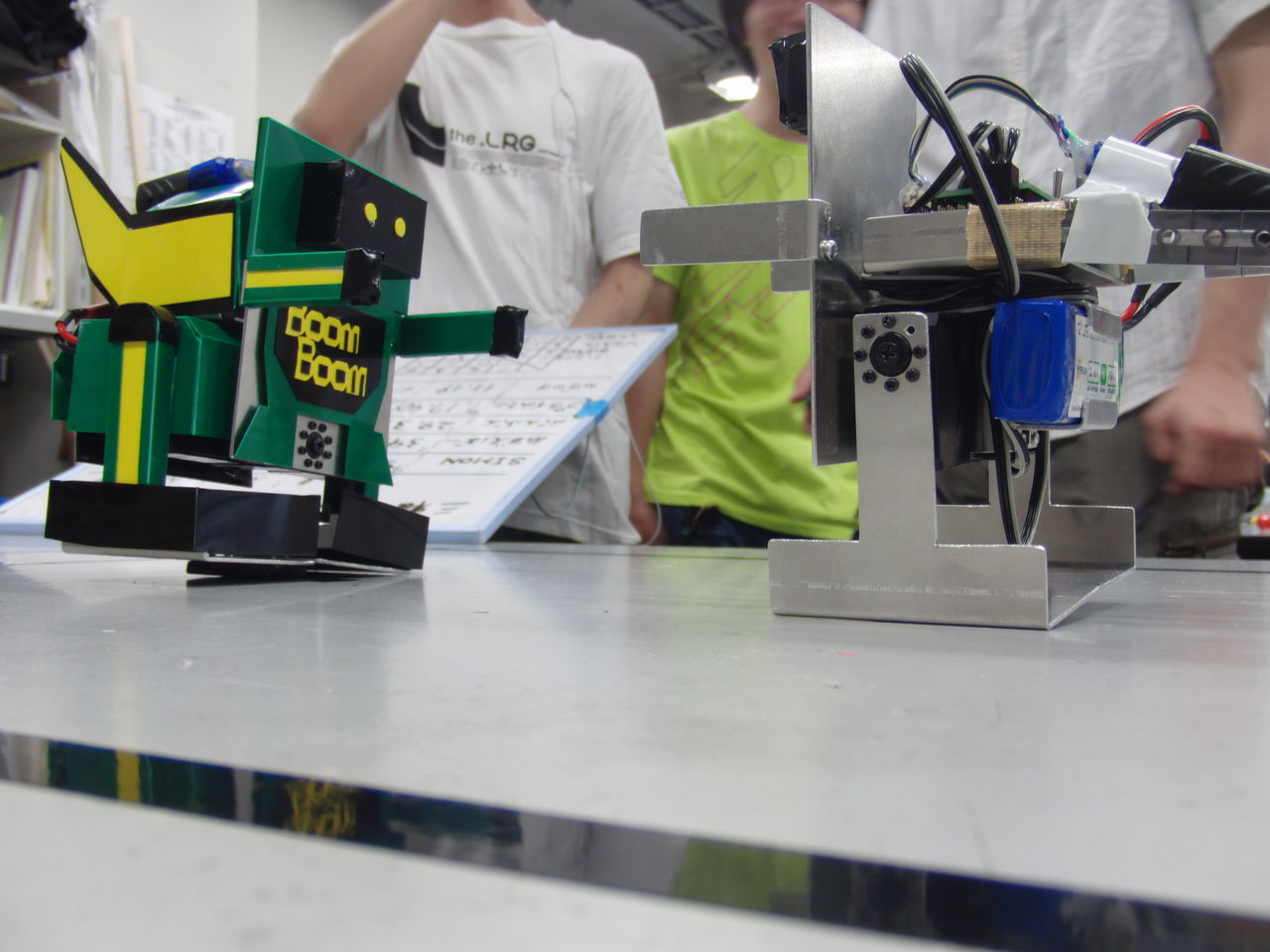 予告通り、1年生の三軸ロボットによる部内戦を行いました!!・・・・・・・が、