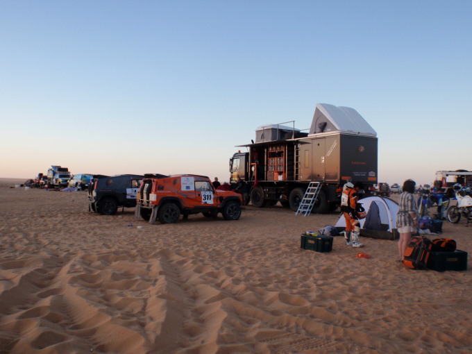 2日分の睡眠を充分に取り、すっかり気分をリフレッシュして、3日目の朝を迎えました。 前夜のブリーフィングの際に、オフィシャルより、本日は CP2 周囲の砂が非常に柔らかいというインフォメーションがありました。それを聞き、日本チームの中でも自分の中でも、 “とにかく今日は、CP2 までが勝負。CP2 さえ越えれば、あとは楽勝。3日目は終わった様なもの” という雰囲気がありました。ナビさんからも、 “CP2 までが勝負だから” と、何度も発破を掛けられて、その度に、緊張感が高まっていきました。