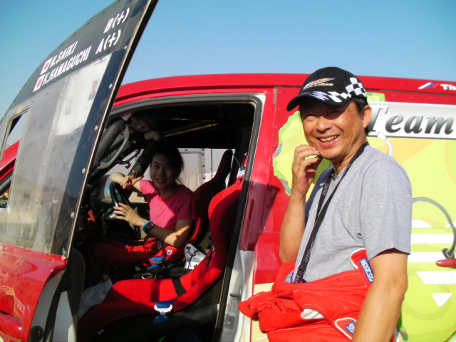 そして、日本チームのスタッフより、前夜、日本チームの間で私の門限を決めるという話が出た事を聞きました。2年連続午前様 & 朝帰りの私に対して、 “夜遅くまで砂遊びし過ぎ! ” とか “嫁入り前の娘なのに… ” と。余りの素行の悪さに、 “こうなったら、門限決めるか” という話になった様です。そんなこんなで、1時間日本チームのビバークに滞在した後に、2日目のスタート地点に向かいました。