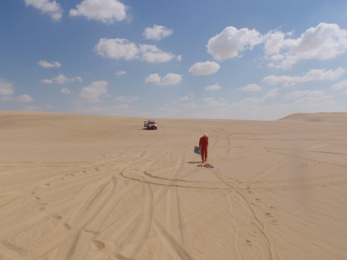 最初の作業から3回程前進し、あと1.5m 程で砂丘の縁に到達し、斜面が上りから下りに変わろうとしている時です。