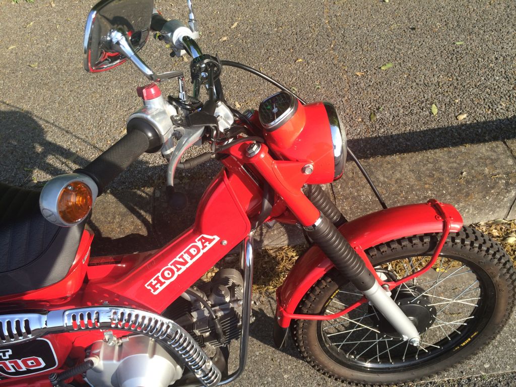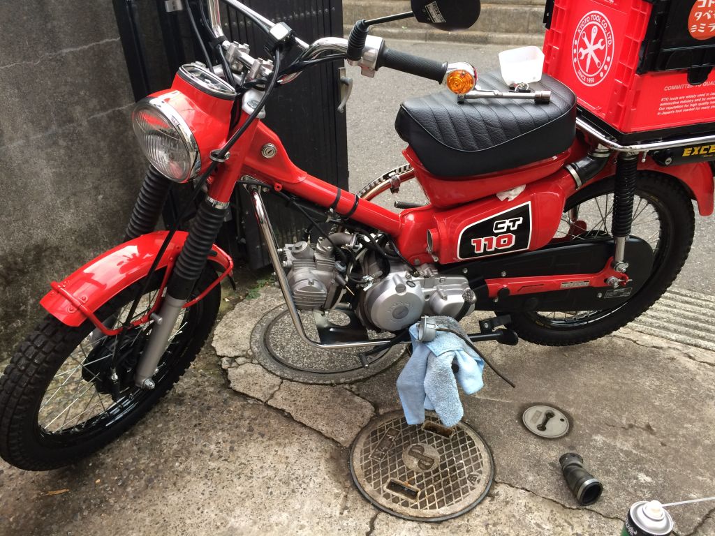 ÀèÆü¡¢CT110¤Î¥¢¥¤¥³¥ó¤Ç¤¢¤ë¥Õ¥í¥ó¥È¥¥ã¥ê¥¢¤ò³°¤·¡¢¥Ø¥Ã¥É¥é¥¤¥È¥±¡¼¥¹¤òCL50½ãÀµÉôÉÊήÍѤǥܥǥ£Æ±¿§(R110)¤ËÊѹ¹¡£¸Þǯ´Ö¥Ú¥Ã¥È¥Ü¥È¥ë¥Û¥ë¥À¡¼¤È¤·¤Æ¤·¤«»È¤Ã¤¿»î¤·¤Î¤Ê¤¤¥Õ¥í¥ó¥È¥¥ã¥ê¥¢¤ò¼è¤Ãʧ¤¤¡¢¤¹¤Ã¤¤ê²½¡£¤´ÀèÁĤ¬¤¨¤ê¡¢CT90¤Á¤Ã¤¯¤Ë¤Ê¤ê¤Þ¤·¤¿¡£