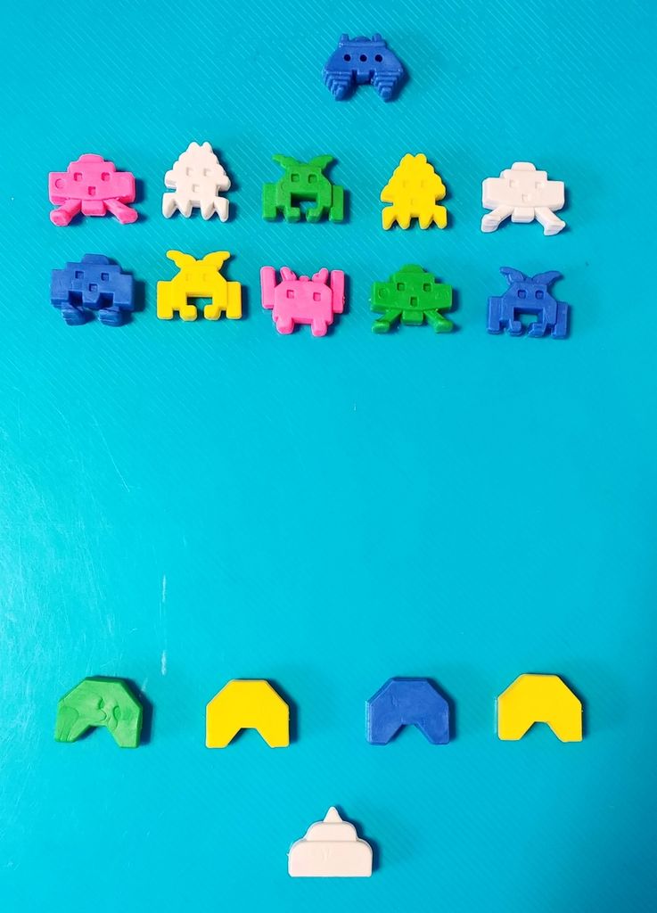 ○に満なので丸満って会社かな?昭和レトロなインベーダー消しゴムのセット商品です。