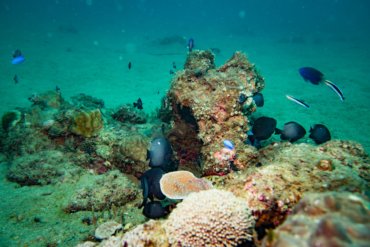 S120から、濁り具合とアカヒメジの群れ具合をお届けしてエキジット!