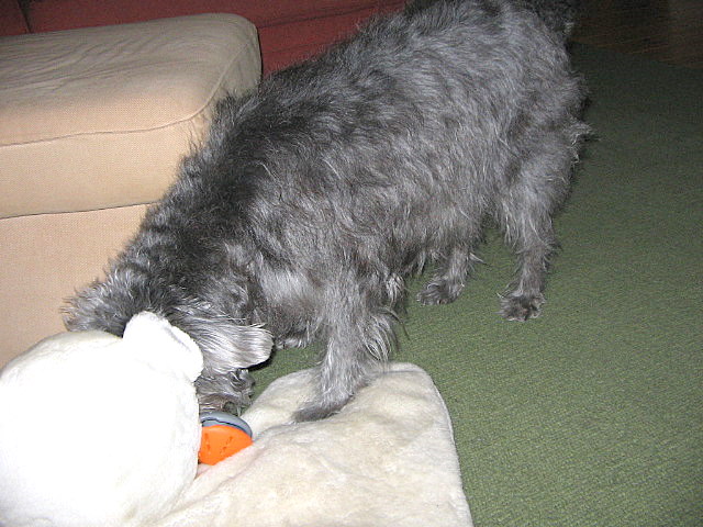 その間、Dixieは、自分のベッド前の白熊の上で横になって休んでいましたから、