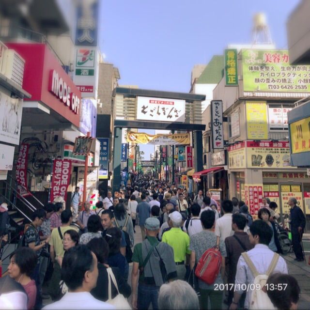 電車内、戸越銀座商店街